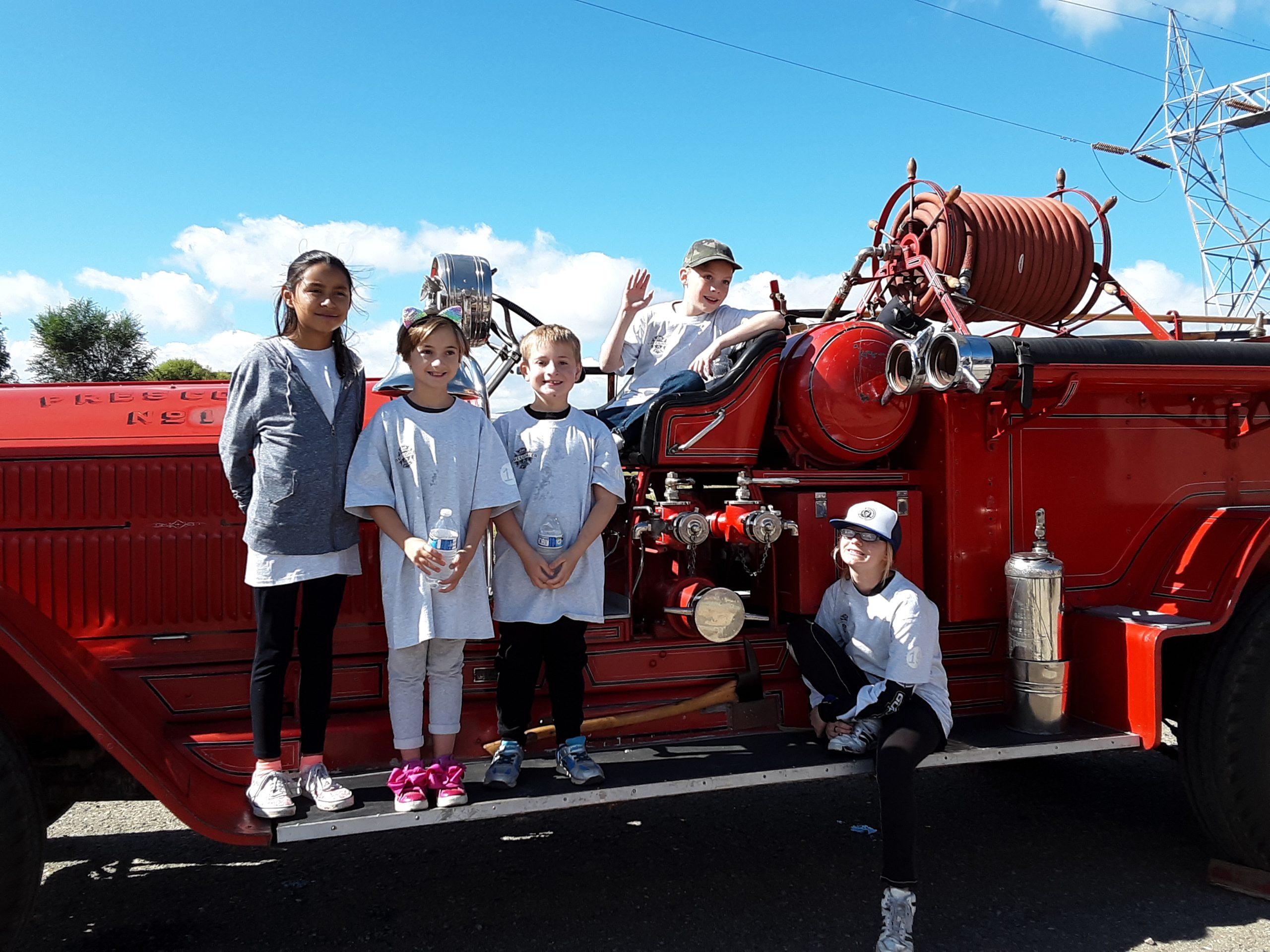 Prescott Fire Dept. and Native Air held a special event Saturday, Sept. 28, for Yavapai Big Brothers Big Sisters. The children (and a few grownups!) enjoyed walking up the ladder, testing turnout gear, hosing the cones in the windows, riding the antique fire truck and watching the helo land and meeting the crew. Thank you to Big Brother Fire Chief Dennis Light, Conrad Jackson and the fire dept. staff who all volunteered their day, the department’s Explorers, the amazing Native Air crew and Allegra Print and Mail for the T-shirts!