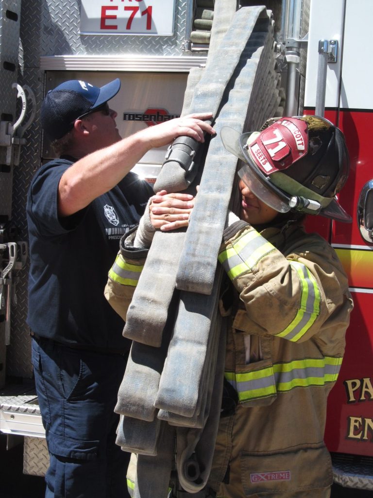She exudes confidence climbing the ladder to the top of the fire truck. She puts all of her fitness behind pulling the heavy fire hose off the truck and across the parking lot. She’s pretty sure this is what she wants to dedicate her life to.